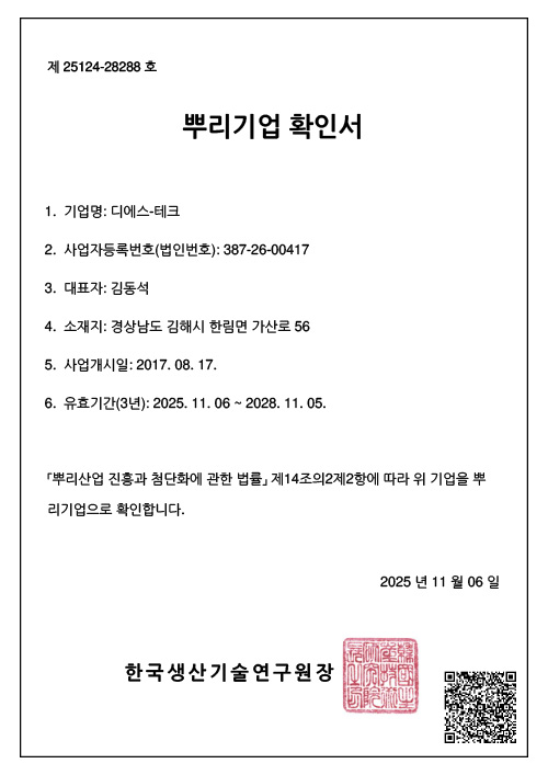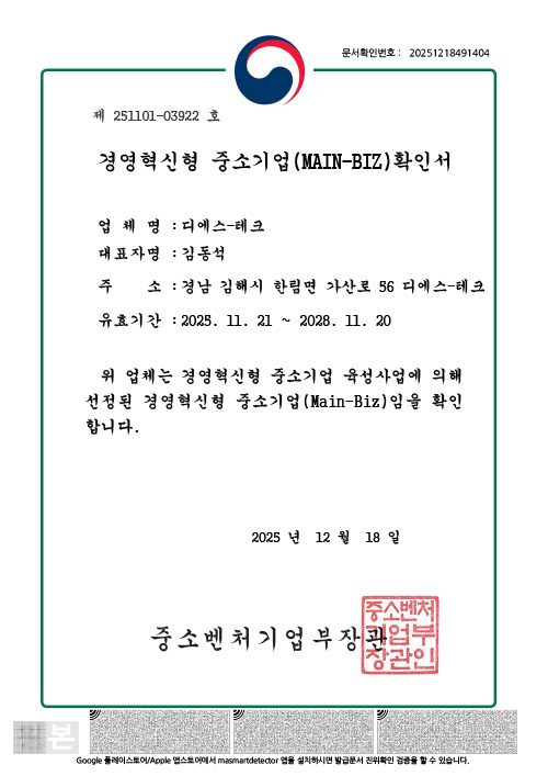 품질인증으로 고객만족을 위해 노력하는 디에스-테크